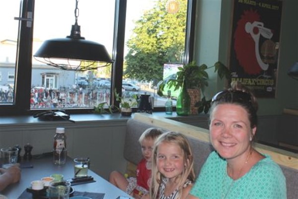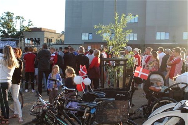 Borgmester Marie Stærke havde taget familien med til fodbold og fik lige en bid mad. -