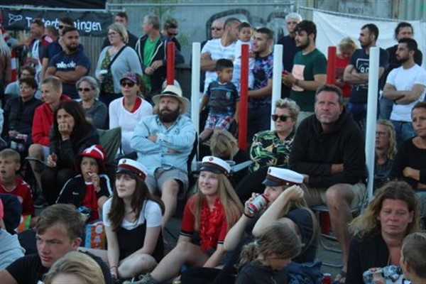 Selvom det foregik udenfor hjemmet var der et par som havde taget deres stol med så man sad ordenligt. Det var nok også nødvendigt, da kampende varede over to en halv time. -