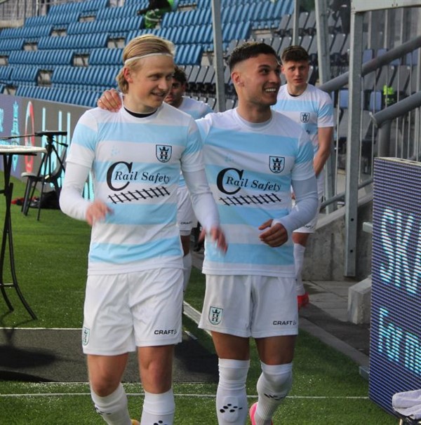 På transfer vinduets sidste dag købte FC Helsingør Liam Jordan fri i HB Køge. Her er han til højre i billedet. Han er øjensynligt fint integreret i FC Helsingør truppen og på det sidste er han startet inde. Han var en hård modstander for HB Køge i kampen, og havde flere farlige forsøg, og lagde op til det andet mål. Alt det bedste til Liam Jordan fremover. -