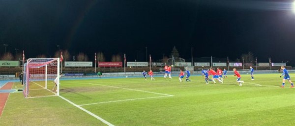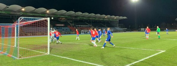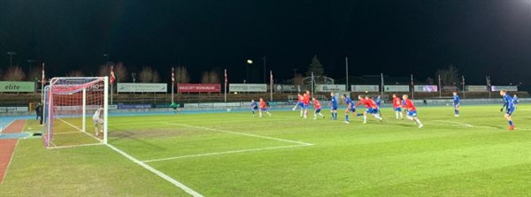 HB Køge satsede stort på dødbolde. Her har HB Køge fået frispark et gunstigt sted, men forsøget rammer muren og går et pænt stykke over mål. -