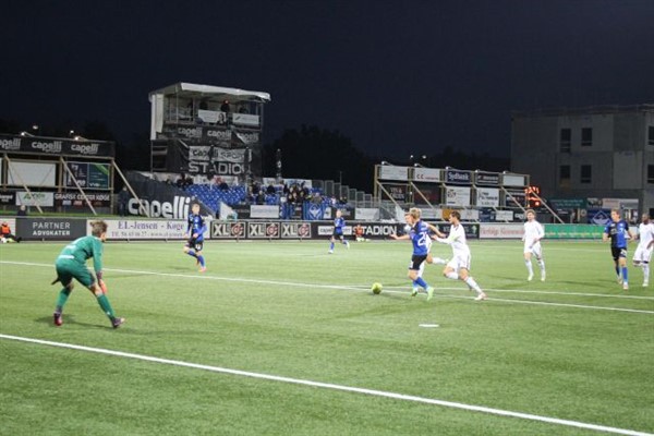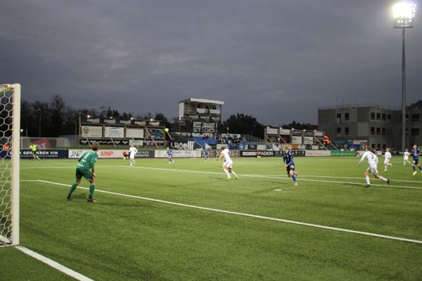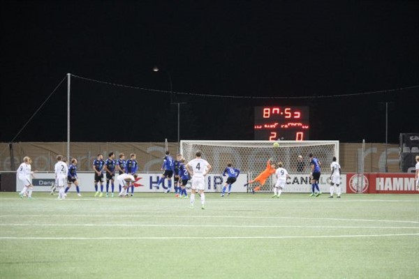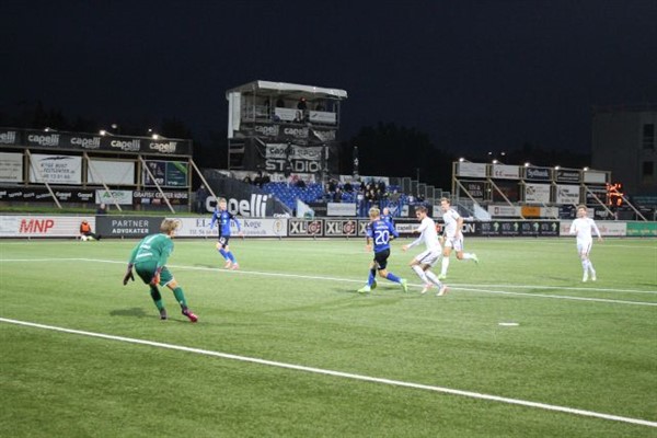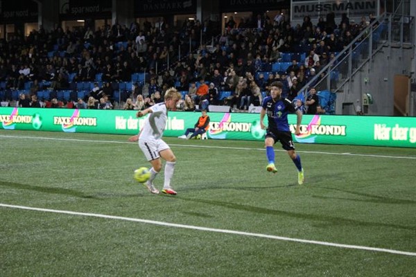 Joachim Mæhle havde succes med det under EM slutrunden i sommer som gav et mål til Danmark, og her forsøger Marius Elvius sig med et indlæg med ydersiden. Før eller siden lykkes det. -